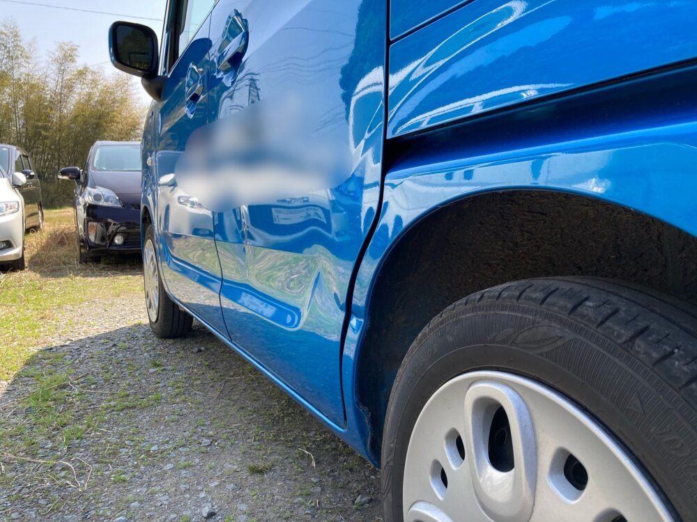 損傷箇所は左側のスライドドアとタイヤハウスです。